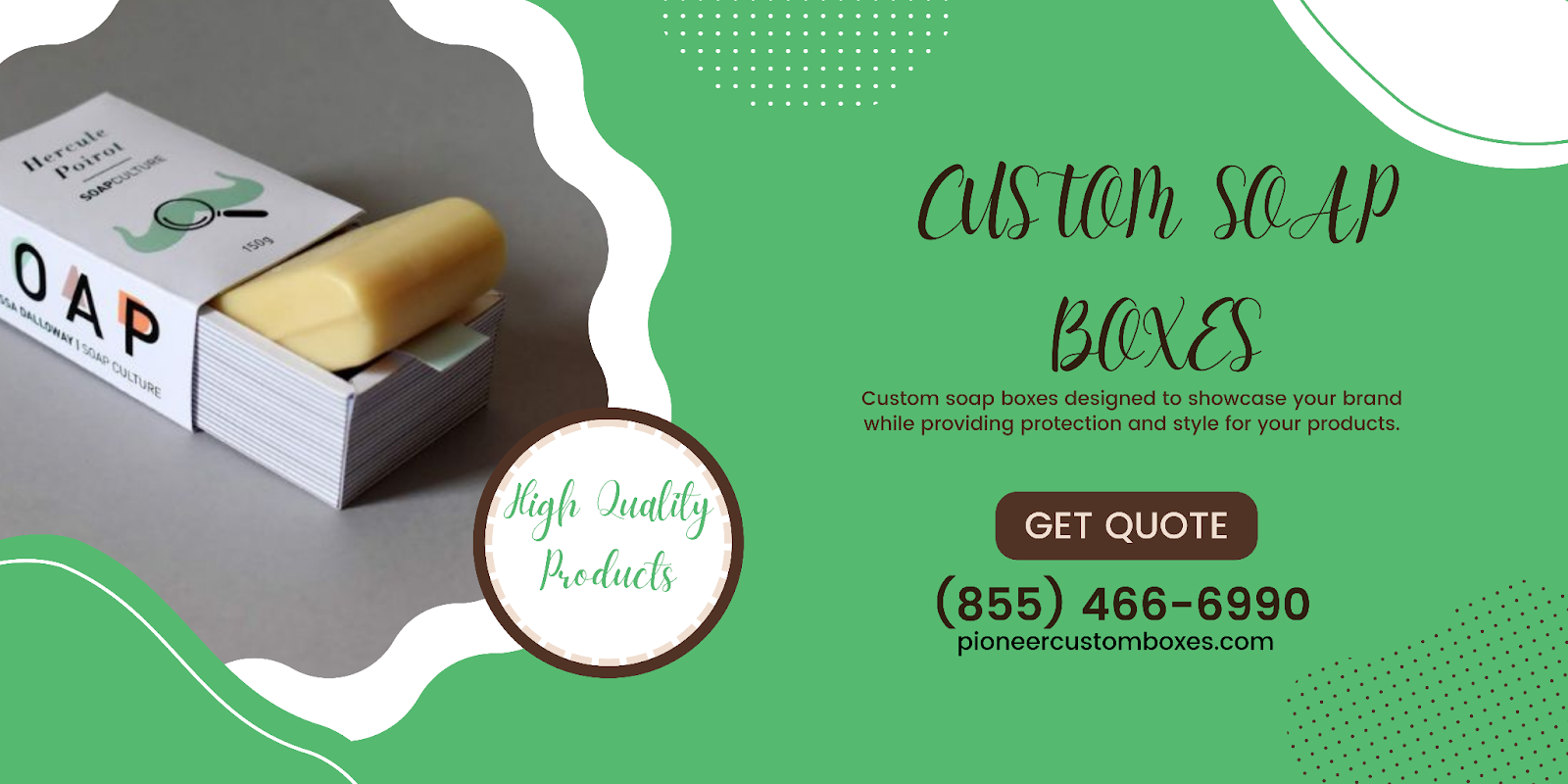 Pioneer Custom Boxes is a leading soap packaging company. They create custom boxes for soap and design them beautifully. Here’s what sets us apart: